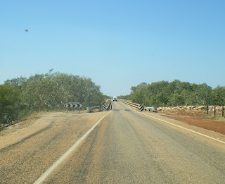 Stopped at Willara Bridge Roadhouse, made myself a cuppa, while i was walking outside, an Aboriginal Lady came up to me asking if I wonted to buy a Boab Seed she drew on, it was a beautiful Goana, apparently they grow up to 5 feet here., I told her I was going over the border probably couldn't take it with me.
